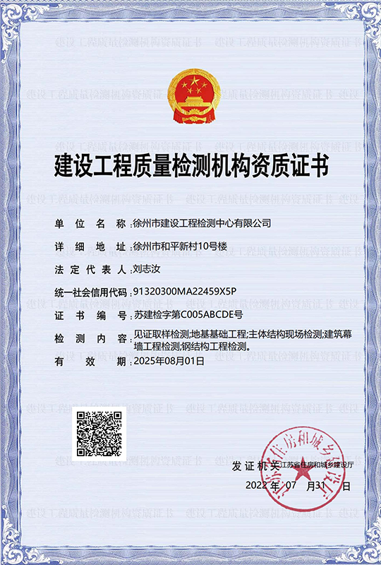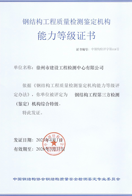 徐州市建設(shè)工程檢測中心有限公司(以下簡稱徐建檢測公司)是徐州市產(chǎn)城發(fā)展集團(tuán)有限公司(以下簡稱產(chǎn)城集團(tuán))的全資子公司。徐建檢測公司前身為徐州市建設(shè)工程檢測中心,2018年事轉(zhuǎn)企改制,2020年4月,完成轉(zhuǎn)企改制資產(chǎn)劃轉(zhuǎn)工作。 徐建檢測公司是集檢測、檢驗(yàn)、鑒定、咨詢等技術(shù)服務(wù)為一體、具有獨(dú)立法人資質(zhì)的綜合性第三方服務(wù)機(jī)構(gòu)。公司主要從事建設(shè)工程領(lǐng)域相關(guān)工程質(zhì)量檢測及技術(shù)咨詢服務(wù),業(yè)務(wù)覆蓋地基基礎(chǔ)、建筑材料、建筑結(jié)構(gòu)、鋼結(jié)構(gòu)工程、市政工程、綠色建筑節(jié)能工程、建筑安全與施工設(shè)備、建筑防水、建筑水電、裝飾裝修、建筑物防雷、室內(nèi)環(huán)境、房屋安全鑒定、城市軌道交通工程等專業(yè)領(lǐng)域。......